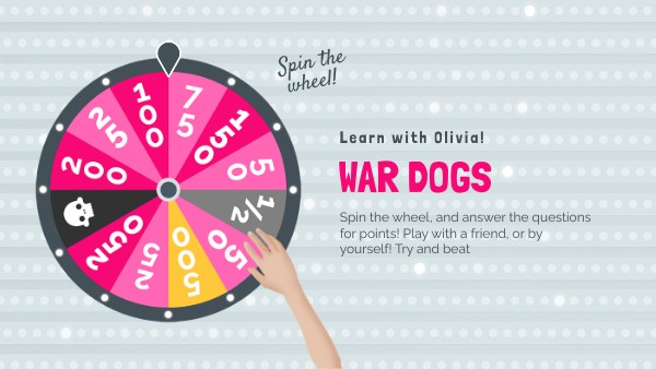 Spin the wheel, and answer the questions for points! Play with a friend, or by yourself! Try and beat