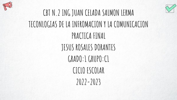 CBT N.2 ING JUAN CELADA SALMON LERMATECONLOGIAS DE LA INFROMACION Y LA COMUNICACION PRACTICA FINAL JESUS ROSALES DORANTES GRADO:1 GRUPO:C1 CICLO ESCOLAR 2022-2023