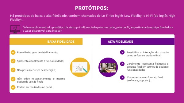 O desenvolvimento do protótipo da startup é influenciado pelo mercado, pelo perfil/ experiência da equipa fundadora e valor disponivel para investir.