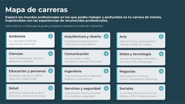 Explorá los mundos profesionales en los que podés trabajar y profundizá en tu carrera de interés, inspirándote con las experiencias de reconocidos profesionales.