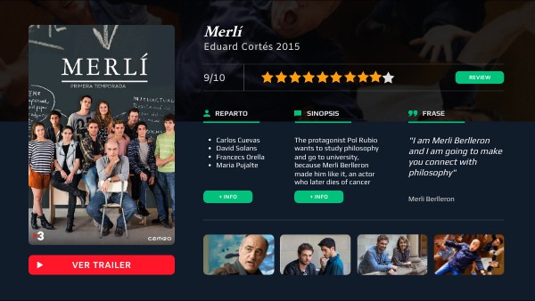 The protagonist Pol Rubio wants to study philosophy and go to university, because Merli Berlleron made him like it, an actor who later dies of cancer