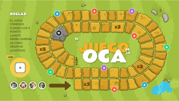 EL JUEGO COMIENZA CUANDO CAE 6 PUNTOS 2 eXISTE PRERECOMPENSAS COMO DESAFIOS 3.CASTIGOS