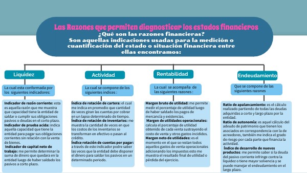 ¿Qué son las razones financieras? Son aquellas indicaciones usadas para la medición o cuantificación del estado o situación financiera entre ellas encontramos: