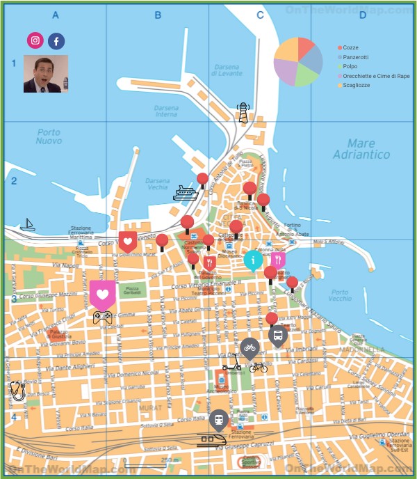 Grazie alla mappa interattiva del centro di Bari puoi scoprire bellezze artistiche, architettoniche, gastronimiche, folklore e vicoli antichi