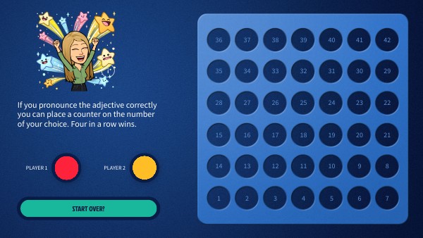 If you pronounce the adjective correctly you can place a counter on the number of your choice. Four in a row wins.