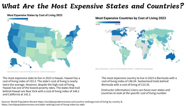 [Instructor information] Users can hover over states and countries to look at the specific cost of living number.