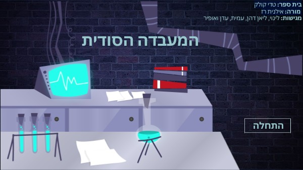הלכנו למסיבת פיג'מות אצל חברתנו הטובה עדן, הלכנו להביא מזרונים מהמרתף שבבית שלה, שמענו קולות מוזרים והלכנו לבדוק מאיפה הם מגיעים, מצאנו ארון גדול ומפחיד וגילינו שהרעשים ממנו. פתחנו אותו ונכנסנו אליו, פתאום הארון נסגר, האורות נדלקו, הבנו שהגענו למעבדה סודית וננעלנו בה. בבקשה תעזרו לנו לצאת, ממש מפחיד פה והרעשים ממשיכים!!!