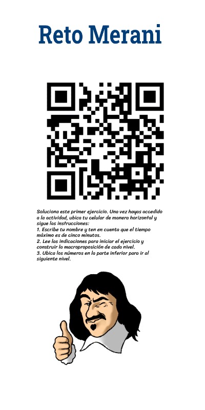 Soluciona este primer ejercicio. Una vez hayas accedido a la actividad, ubica tu celular de manera horizontal y sigue las instrucciones: 1. Escribe tu nombre y ten en cuenta que el tiempo máximo es de cinco minutos. 2. Lee las indicaciones para iniciar el ejercicio y construir la macroproposición de cada nivel. 3. Ubica los números en la parte inferior para ir al siguiente nivel.