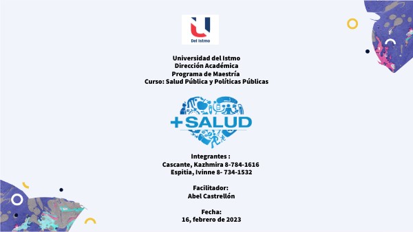 Universidad del Istmo Dirección Académica Programa de Maestría Curso: Salud Pública y Políticas Públicas