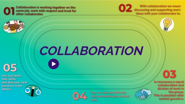 Collaboration is working together on the same job, work with respect and trust for other collaborator.