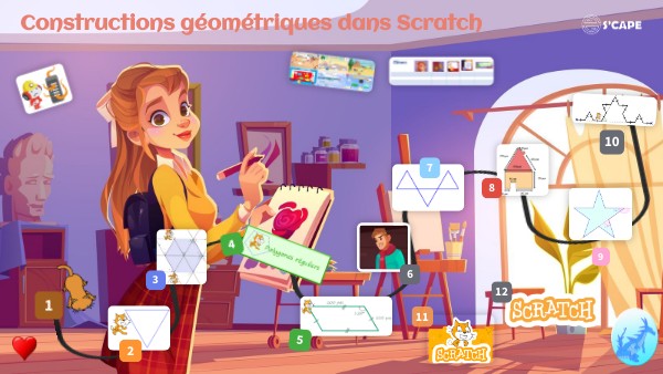Par exemple l'instruction tourner de 50° permet de tracer un angle de 180° - 50° = 130°