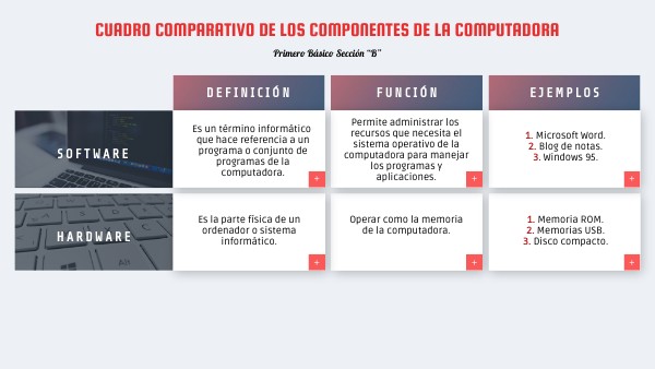 CUADRO COMPARATIVO DE LOS COMPONENTES DE LA COMPUTADORA
