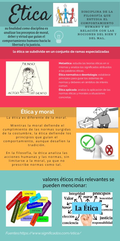 Metaética: estudia las teorías éticas en sí mismas y analiza los significados atribuidos a las palabras éticas.Ética normativa o deontología: establece principios para guiar los sistemas de normas y deberes en ámbitos de interés común. Ética aplicada: analiza la aplicación de las normas éticas y morales a situaciones concretas.