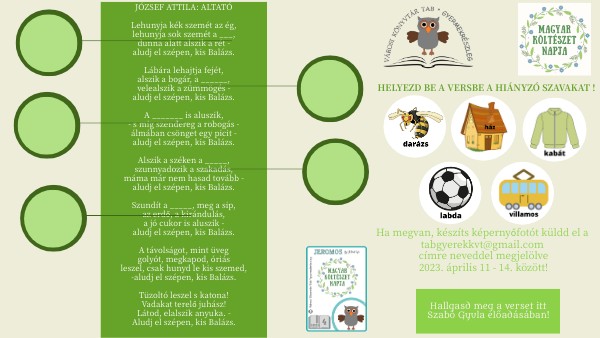 Ha megvan, készíts képernyőfotót küldd el a tabgyerekkvt@gmail.com címre neveddel megjelölve 2023. április 11 - 14. között!
