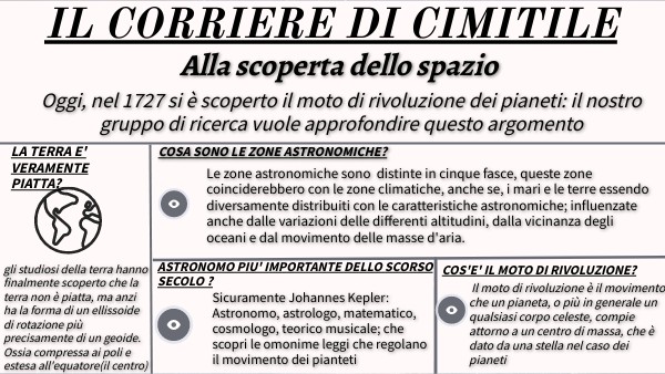 Oggi, nel 1727 si è scoperto il moto di rivoluzione dei pianeti: il nostro gruppo di ricerca vuole approfondire questo argomento