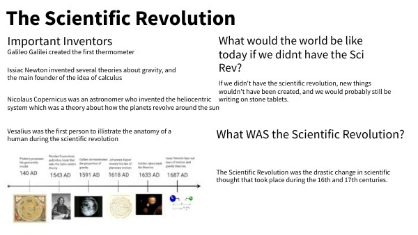 If we didn't have the scientific revolution, new things wouldn't have been created, and we would probably still be writing on stone tablets.