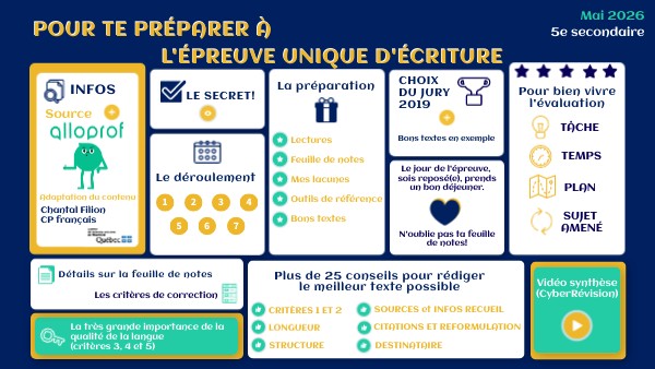 Le jour de l'épreuve, sois reposé(e), prends un bon déjeuner. N'oublie pas ta feuille de notes!