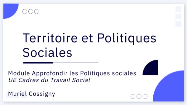 Module Approfondir les Politiques sociales UE Cadres du Travail Social Muriel Cossigny