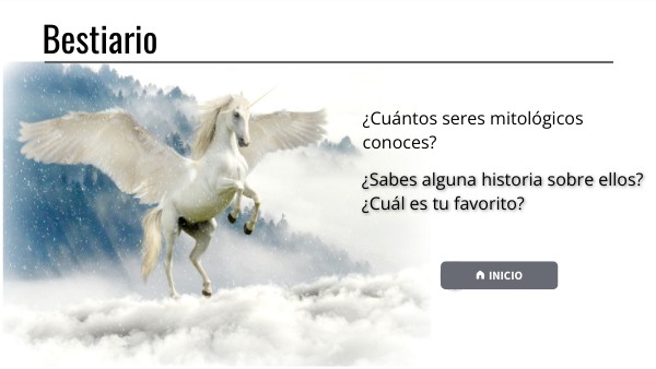 Puede ser un librito o una presentación en:Power Point, Genially, cartulina... En ella debe aparecer:-Foto -Descripción detallada -Caracerísticas mágicas o fantásticas -Lugar que habita -Origen -Presencia en el arte (pinturas, esculturass, arquitectura, etc.) -Historia o Leyenda que protagoniza -PRESENTACIÓN ORAL -RELIEVE O MÁSCARA -