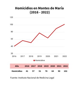 Homicidios en Montes de María (2016 - 2022)