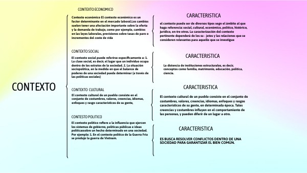 el contexto puede ser de diversos tipos segn el ámbito al que haga referencia: social, cultural, económico, político, histórico, jurídico, en-tre otros. La caracterización del contexto pertinente dependerá de los su - jetos y las relaciones que se consideren relevantes para aquello que se investigue