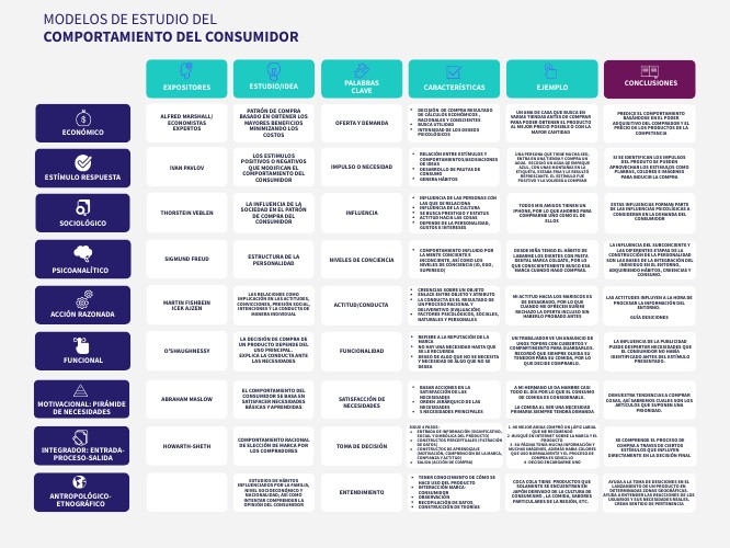 Matriz de clasificación sobre los modelos de comportamiento del consumidor. Realizado por Karina López para la materia de Comportamiento del consumidor, impartida en ESCA Santo Tomás perteneciente al Instituto Politécnico Nacional