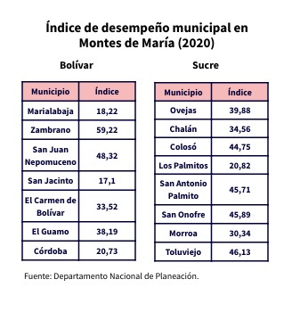 Índice de desempeño municipal en Montes de María (2020)