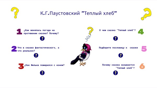 Вопросы к сказке К.Паустовского "Теплый хлеб"