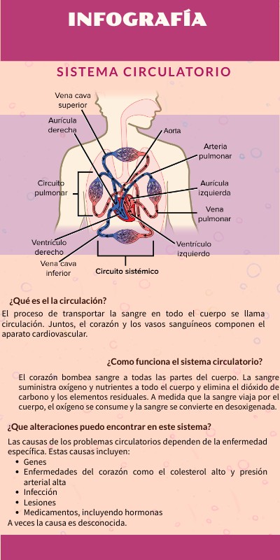 El corazón bombea sangre a todas las partes del cuerpo. La sangre suministra oxígeno y nutrientes a todo el cuerpo y elimina el dióxido de carbono y los elementos residuales. A medida que la sangre viaja por el cuerpo, el oxígeno se consume y la sangre se convierte en desoxigenada.