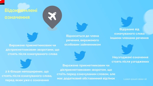 Виражене прикметниковим чи дієприкметниковим зворотами, що стоять після означуваного слова