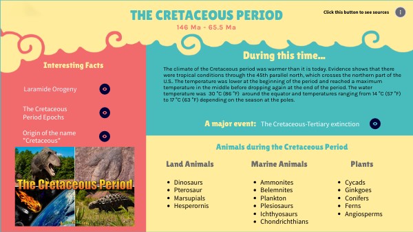 - Encyclopædia Britannica, inc. (2023, January 12). Cretaceous period. Encyclopædia Britannica. Retrieved February 19, 2023, from https://www.britannica.com/science/Cretaceous-Period