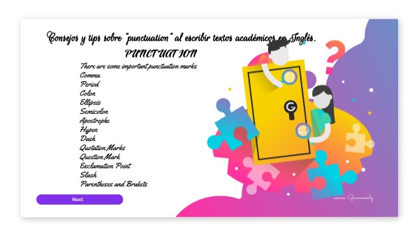Consejos y tips sobre "punctuation" al escribir textos académicos en Inglés.