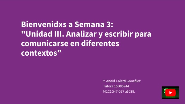 Bienvenidxs a Semana 3: "Unidad III. Analizar y escribir para comunicarse en diferentes contextos”