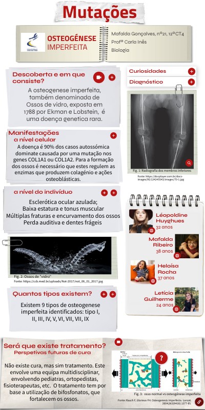 Esclerótica ocular azulada;Baixa estatura e tonus muscularMúltiplas fraturas e encurvamento dos ossos Perda auditiva e dentes frágeis