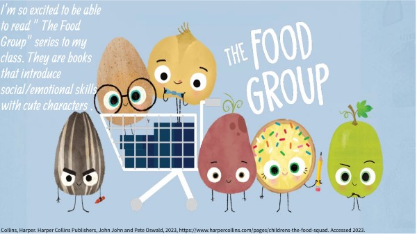 I'm so excited to be able to read " The Food Group" series to my class. They are books that introduce social/emotional skills with cute characters .