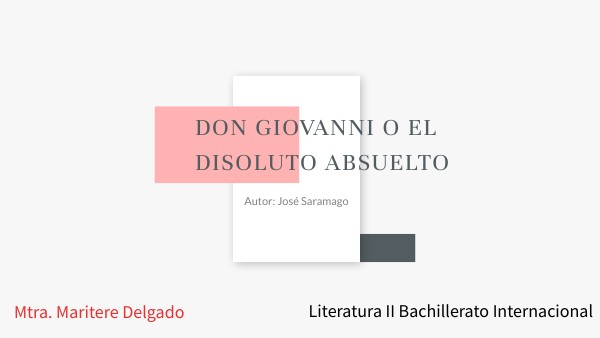 Género - Dramático (Teatro)Subgénero - Comedia (sátira) Sátira - Discurso o composición literaria en prosa o verso en que se critican agudamente las costumbres o vicios de alguien con intención moralizadora, lúdica o meramente burlesca. En el caso de Saramago hay una intención burlesca, ya que pretende absolver o perdonar a Don Giovanni de las acciones que lo acusan y en su lugar, colocarse como víctima y al mismo tiempo, situar a las mujeres como culpables y victimarias.