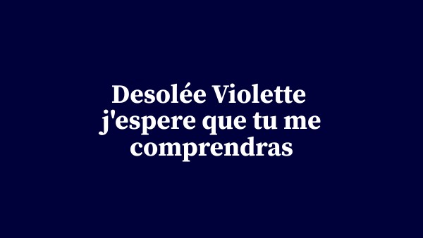 ecoute je sui vraiment désolée pour toute a l'heure . Désolée de mettre énerver contre toi . Regarde la suite j'espere que tu comprendras .