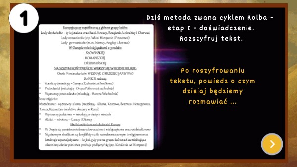 Dziś metoda zwana cyklem Kolba - etap I - doświadczenie.Rozszyfruj tekst.