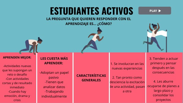 APRENDEN MEJOR:-Actividades nuevas que les supongan un reto o desafío -Con actividades cortas y de resultado inmediato -Cuando hay emoción, drama y crisis