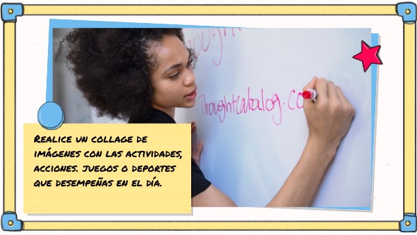 Elabore un collage de imágenes con actividades, acciones, juegos o deportes que desempeña en el día.