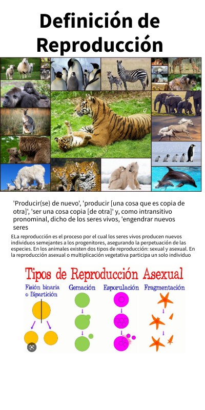 ELa reproducción es el proceso por el cual los seres vivos producen nuevos individuos semejantes a los progenitores, asegurando la perpetuación de las especies. En los animales existen dos tipos de reproducción: sexual y asexual. En la reproducción asexual o multiplicación vegetativa participa un solo individuo