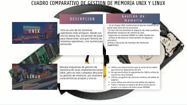 CUADRO COMPARATIVO DE GESTION DE MEMORIA UNIX Y LINUX