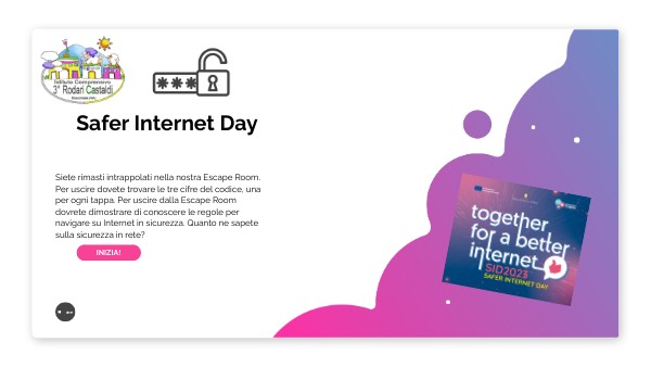 Siete rimasti intrappolati nella nostra Escape Room. Per uscire dovete trovare le tre cifre del codice, una per ogni tappa. Per uscire dalla Escape Room dovrete dimostrare di conoscere le regole per navigare su Internet in sicurezza. Quanto ne sapete sulla sicurezza in rete?