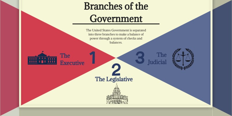 The United States Government is separated into three branches to make a balance of power through a system of checks and balances.