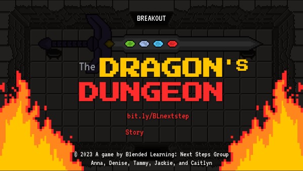 Legend says that a faraway kingdom forged an Evidence of Learning sword that together with the power of the Elemental Gems (time, place, path, and pace) could defeat any evil. Our mission is to gather the gems to assemble the ultimate weapon and defeat the dragon hiding in the dungeon.