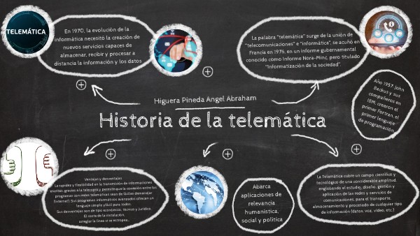 La palabra “telemática” surge de la unión de “telecomunicaciones” e “informática”, se acuñó en Francia en 1976, en un informe gubernamental conocido como Informe Nora-Minc, pero titulado “Informatización de la sociedad”.