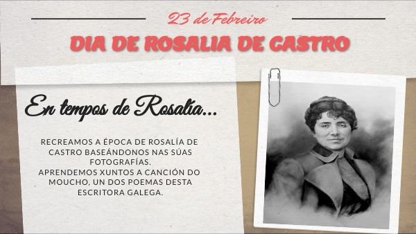 RECREAMOS A ÉPOCA DE ROSALÍA DE CASTRO BASEÁNDONOS NAS SÚAS FOTOGRAFÍAS. APRENDEMOS XUNTOS A CANCIÓN DO MOUCHO, UN DOS POEMAS DESTA ESCRITORA GALEGA.
