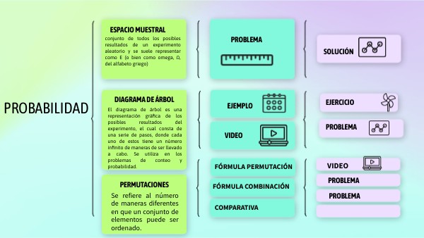 El diagrama de árbol es una representación gráfica de los posibles resultados del experimento, el cual consta de una serie de pasos, donde cada uno de estos tiene un número infinito de maneras de ser llevado a cabo. Se utiliza en los problemas de conteo y probabilidad.