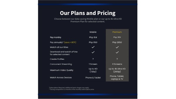 Choose between our data-saving Mobile plan or our up to 4k Ultra HD Premium Plan for selected content.