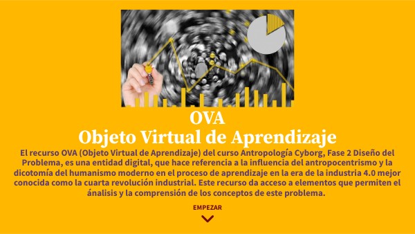 El recurso OVA (Objeto Virtual de Aprendizaje) del curso Antropología Cyborg, Fase 2 Diseño del Problema, es una entidad digital, que hace referencia a la influencia del antropocentrismo y la dicotomía del humanismo moderno en el proceso de aprendizaje en la era de la industria 4.0 mejor conocida como la cuarta revolución industrial. Este recurso da acceso a elementos que permiten el ánalisis y la comprensión de los conceptos de este problema.